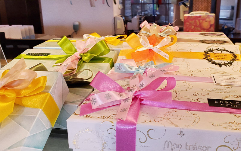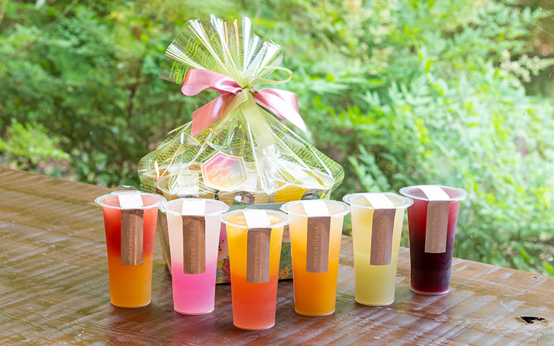 人気のラスク各種、フィナンシェ、焼きドーナツ、キャラメルカステラ、フルーツケーキ、抹茶ケーキ、クッキー各種は可愛いギフト用のラッピングもご用意しています。プレミアムゼリーは6種のカラフルなフルーツの組み合わせが美味しくて楽しい人気商品です。